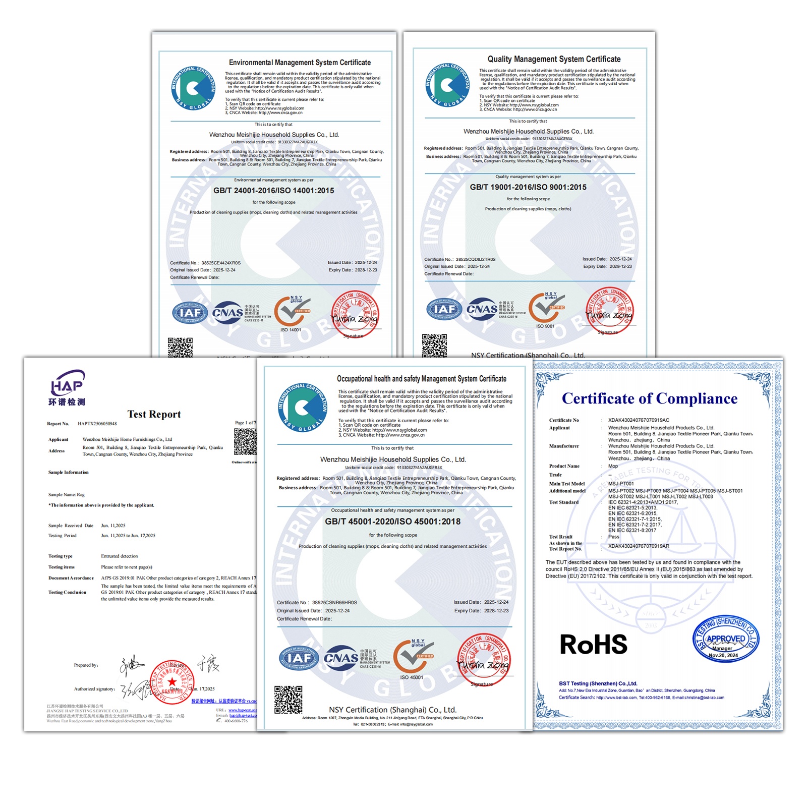 Nous détenons une gamme complète de certifications, notamment CE, ISO 9001, ISO 14001, ISO 45001, RoHS et REACH, garantissant que nos produits répondent aux normes internationales les plus élevées en matière de qualité, de sécurité et de protection de l'environnement.