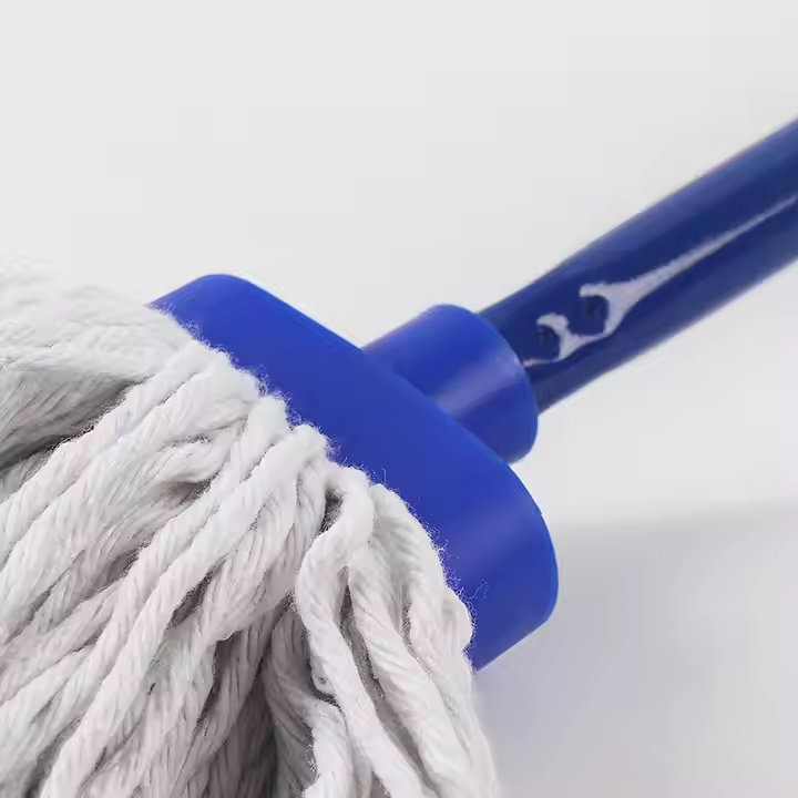 Une vadrouille humide de coton à poignée ménagère robuste conçue pour l'efficacité de nettoyage de qualité industrielle, combinant l'absorbance naturelle des fibres de coton étroitement pressées avec un cadre métallique renforcé pour une durabilité sans égal. Idéal pour le nettoyage lourd sur les surfaces texturées comme le béton, les sols scellés et les patios extérieurs, cette vadrouille offre des performances supérieures dans des environnements commerciaux et extrêmes.