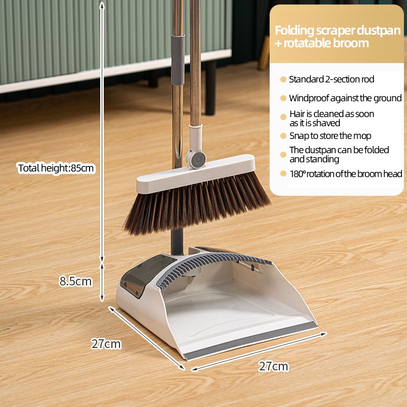 La poubelle étendue comprend des poils plus rigides et des bords en caoutchouc pour empêcher efficacement la poussière de glisser. Le balai portable fonctionne exceptionnellement bien sur les surfaces des carreaux, offrant des performances de nettoyage exceptionnelles. Les dents de peigne plus fines aident à capturer des débris plus petits et à enlever les poils d'animaux des planchers et des tables, ce qui rend le processus de nettoyage plus efficace.